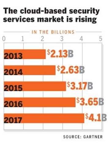 가트너는 2017년까지 안전한 이메일 또는 웹 게이트웨이, ID 및 액세스 관리 (IAM), 원격 취약성 평가, 보안 정보 및 이벤트 관리를 포함한 415억 달러의 클라우드 기반 보안 서비스 시장을 예측하고 있습니다.