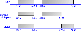 또 다른 요구 사항은 사용되는 대역의 국가 및 지역에 따라 허용되는 다양한 전력 수준이 허용된다는 것입니다. 일반적으로 5150MHz와 5350MHz 사이에는 최대 전력 제한이200mW이고 작동은 실내에서만 사용할 수 있으며 상단 주파수는 종종 최대 1W의 전력을 허용합니다.