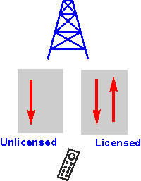 ■ Downlink only : 이것은 가장 기본적인 LTE-U 형식이며 첫번째 LTE 캐리어 애그리게이션(Carrier Aggregation) 배치로의 접근 방식과 유사합니다. 이 기본 셀 링크는 항상 허가된 스펙트럼 대역에 있습니다.