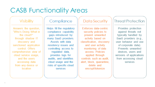 Cloud Access Security Broker (CASB)는 자동 검색을 사용하여 사용중인 클라우드 응용프로그램을 식별하고 위험도가 높은 응용프로그램, 위험도가 높은 사용자 및 기타 주요 위험 요소를 식별합니다. Cloud Access Broker는 암호화 및 장치 프로파일링을 포함하여 다양한 보안 액세스 제어를 시행할 수 있습니다. 또한 Single Sign-On을 사용할 수 없는 경우 자격 증명 매핑과 같은 다른 서비스를 제공할 수도 있습니다.