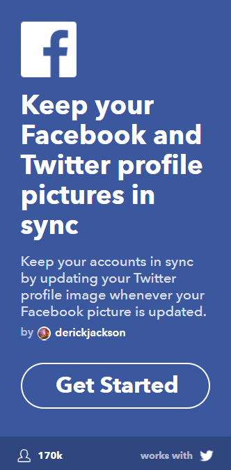 자기 자신의 IFTTT 경험에서 가장 잘 찾은 것은 반복적인 작업이나 자신이 알고있는 곳에서 힘든 작업을 자동화하는 것이 가장 좋습니다. 예를 들어 아래의 경우와 같이 페이스북에 사진이 업데이트될때마다 트위터 프로필 이미지가 자동으로 업데이트가 되게 할 수 있습니다. 이전에는 수동으로 해야 했고 번거롭습니다.