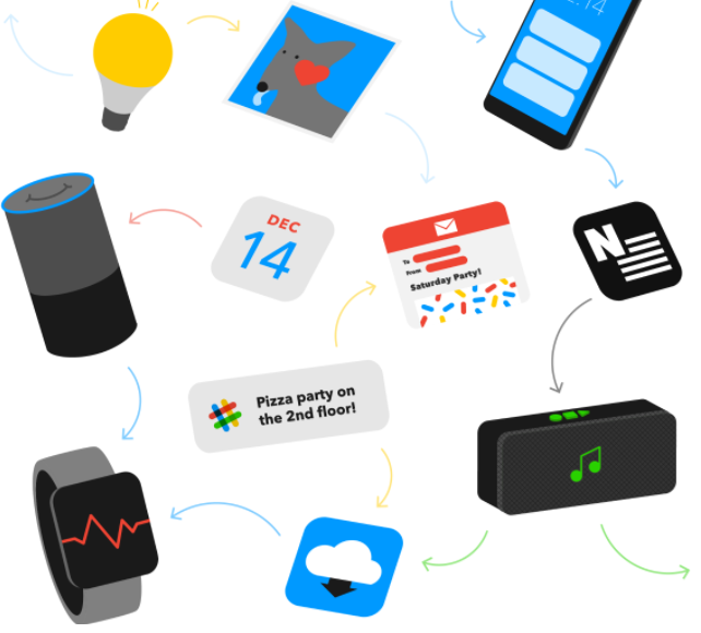 그것은 다음과 같이 작동합니다. 사용자는 하나의 장치 또는 서비스의 일부 이벤트 유형이 자동으로 다른 프로세스에서 조치를 트리거하는 단순한 스크립트 (일명 "레시피")를 만드는 프로세스를 통해 안내됩니다.